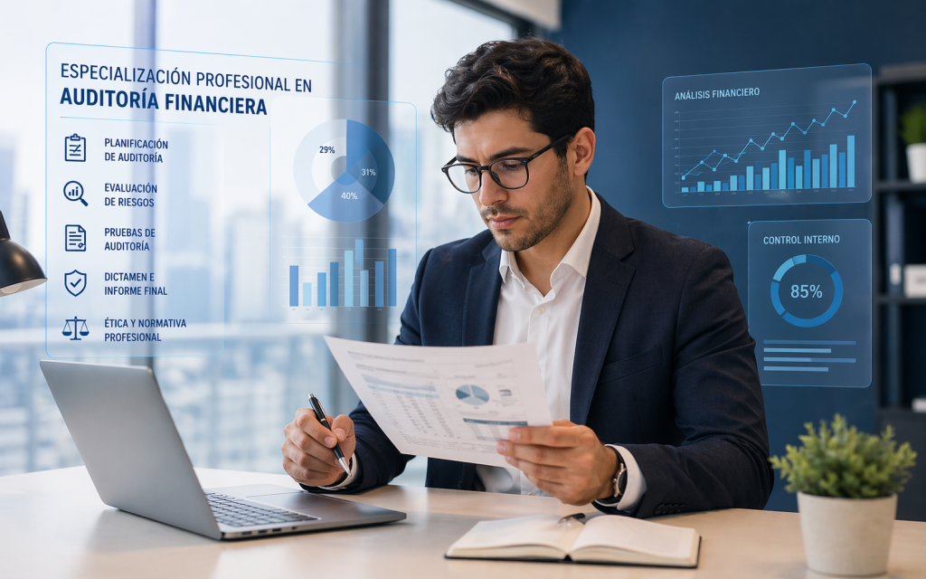 En este curso aprenderá a dominar la principal normativa de auditoría y herramientas relacionadas con el ejercicio de la auditoría financiera. El programa brinda herramientas teóricas de contabilidad y su aplicación práctica general conforme a las Normas Internacionales de Información Financiera (NIIF).